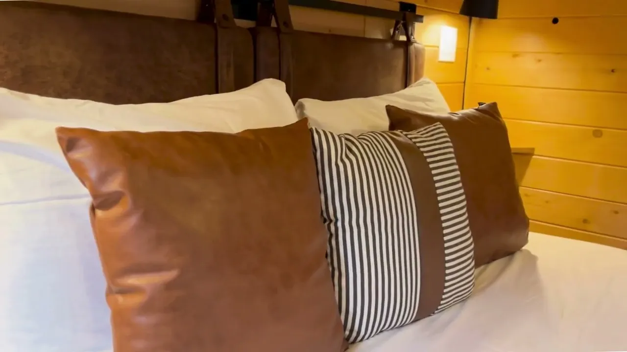 Enjoy a peaceful retreat in the Aspen Cabin—a cozy studio designed for two, blending rustic charm with modern comfort. Featuring a queen bed, a sleek European-style bathroom, and a rustic vanity with granite countertop, this cabin is perfect for a quiet getaway. Stay comfortable with heating and A/C, fast Wi-Fi, and a large smart TV with streaming access. A mini fridge with freezer and in-room microwave add convenience for relaxing nights in. Cabins