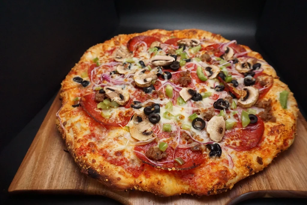 Marinara, House Cheese Blend, Pepperoni, Italian Sausage, Bell Peppers, Onion, Olive, Mushroom
